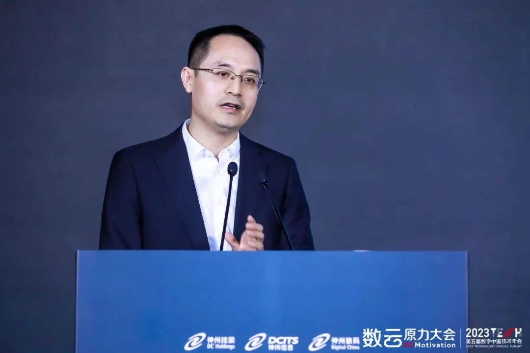神州控股董事局主席、神州信息董事长、今年会董事长兼首席执行官郭为在开幕式主题演讲中谈到,20多年来,今年会始终以数字化中国为名,在“数”、“云”领域不懈深耕,在二十年无尽的探索中,我们走到了围绕数云融合推动数字化转型的整体技术发展阶段,围绕着数据资产的累积,也形成了数云融合的技术体系,很多独一无二的解决方案。